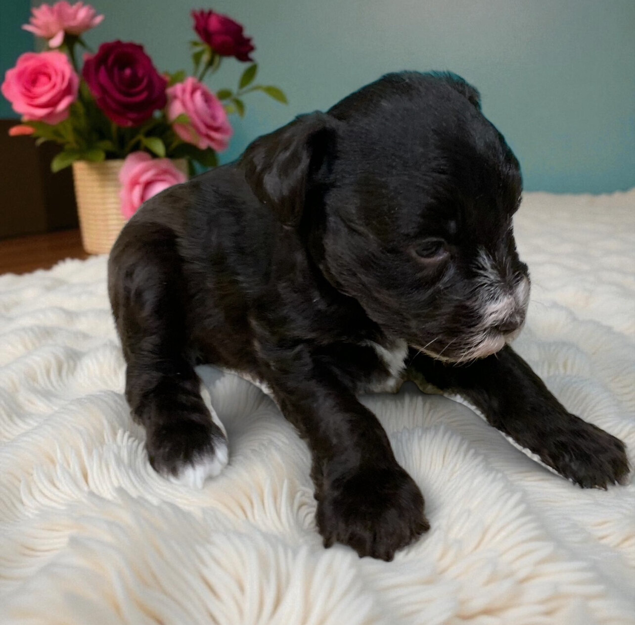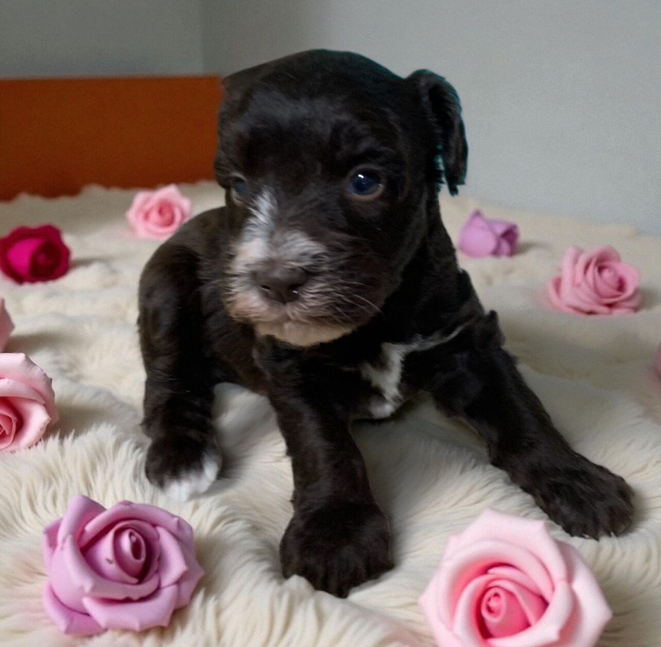 Did you know that the Miniature Schnauzer was developed from the crossing of smaller breeds such as miniature poodles, terrier and Affenpinscher? So adding some poodle genetics in the mix is adding genetics that has always been there. We keep our schnoodles to the schnauzer standard and they look amazing with the schnazuer cut!