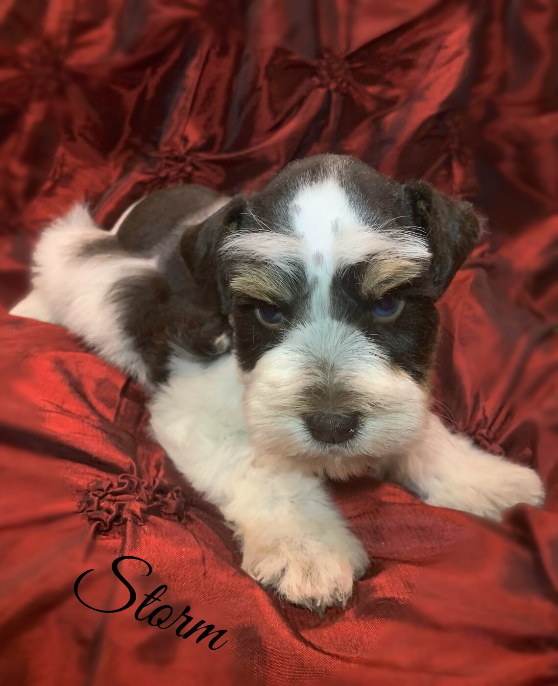 Check out Mini Schnauzer Male Pup Storm. Breathtaking Tri-Color. Dreamy eyebrows!!